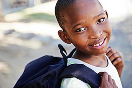 Make sure your child stands up straight while wearing a backpack. If your child has to lean forward, the pack is too heavy.