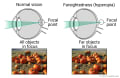 People who are farsighted see things at a distance more easily than they see things up close. Close objects may look blurry. Farsightedness (hyperopia) is usually a variation from normal, not a disease. How it affects you may change as you age.