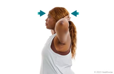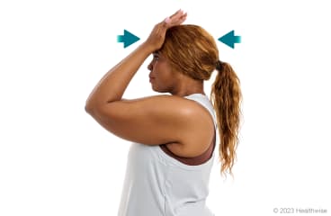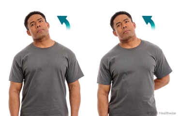 If you would like a little added stretch, place your arm behind your back. Use the arm opposite of the direction you are tilting your head. For example, if you are tilting your head to the left, place your right arm behind your back.